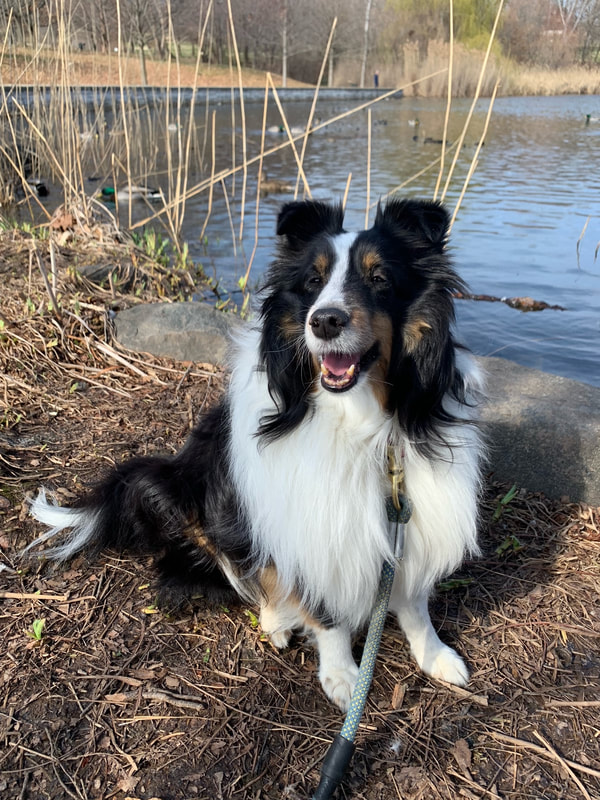 Sky’s coming out has been guided by Eli, the resident Sheltie in her foster home. Sky watches how Eli interacts with humans and has started cautiously modeling her behavior after his. Thanks to Eli and her experienced foster mom, Sky is now very reliably house trained and walks very well on a leash. Watching Eli carefully, Sky has even discovered the delights of sharing the sofa with her foster family. Her new vocabulary shows what’s important in Sky’s new life outside the breeding facility: potty’, outside’, crate,’ in the house’ and ‘sofa.’ Sky also has learned to love being groomed and enjoys going in the car if she’s safely tucked in her crate. Toys are not yet an appealing concept for her unless they have tiny pieces of food stuffed in them as many dog puzzles do. She is very fond of the snuffle mat her foster mom has for her. Sky is now ready to look for her forever home. She has been spayed, had a dental and given all blood tests and vaccinations. The right home for Sky will have a securely fenced yard, loving humans who are home most of the time, and a well-socialized canine buddy who can take Eli’s place as the model for proper house dog behavior. But given the deep shyness Sky has been left with after her many years in the kennel with little socialization, she will need help from her adopters to continue her progress. With time and patience, Sky will make a loyal, affectionate, and extremely handsome companion. Sky is . . . .5 years old, weighs 25 pounds (ideal weight 22), and is 14 inches tall. Her adoption fee is $350. |